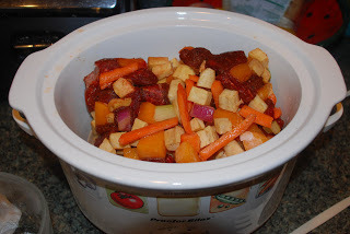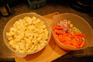 That stew was delicious! Sweet and savory, with just enough heat. Now, I took a little creative license. As I said, I'm on a weird diet so I couldn't use the white potatoes. I thought I'd do a straight substitution for the sweet potatoes, but then one of them was rotten (the story of my life) so I added some butternut squash that was not rotten along with some onions and celery and it came out just fine. I'm sure that there are many places in the various recipes that you could feel free to improvise.