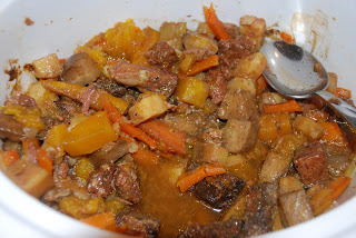 So here goes. I set about to making the Cinnamon-Cumin Beef Stew, which sounded fabulous. Coincidentally, I had just started a cleanse/elimination diet so I was worried I wouldn't be able to find a recipe in the book that would meet my needs, but au contraire! I only had to swap out sweet potatoes for white ones and I was all set.