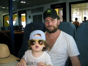 The day started out more Marx Brothers than Mayan quest: we missed the earlier ferry and clambered aboard the totally-packed 10 o’clocker – almost missing that one too as we’d forgotten to retrieve our baby car seat. Then my mother and Miri began turning green on the eleven-mile ferry trip: both suffer from seasickness, and the channel can be choppy. Then on arrival in Playa del Carmen, we discovered the car rental place where we’d booked a car for the day no longer existed – and all other rental shops were sold out. In Mexico, the big international rental chains subcontract out to local outfits whose idea of “reservation” echoes a Seinfeld episode bit (though at least all the people we dealt with were affable).