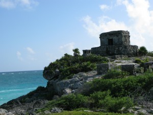 Another day, another adventure: next day, we opted to vote ourselves off the island and check out some Mayan ruins. Cozumel was a minor outpost in ancient times, but most of the lost civilization’s activities were concentrated on the mainland. The great pyramid of Chichen Itza was a bit more of a haul than we were seeking, but another, closer-in spot, seemed like a better choice with family and toddler in tow: the seafront ruins of Tulum.