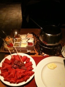 After relaxing at the hotel and taking care of a few packing-related logistics, I opted to treat myself after this end-of-day turnabout: I'd already enjoyed a myriad of Swiss and Italian dishes in my time here, but have never before tried another variant of fondue, that involving meat. Calling it "fondue" is probably a bit of a stretch – although the principle of dipping stuff in a hot liquid still applies, here you boil raw shavings of beef and lamb in flavored oil, and apply dipping sauces to it. Still, it was fantastic, and capped off my time in this town very nicely.