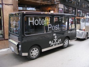 And here, too, Zermatt enchants: to prevent L.A.-style smog in the valley, internal-combustion vehicles were banned from the city ages ago. The odd taxi or service vehicle is miniaturized, electric, and downright adorable. The town is a maze of narrow, pedestrian-friendly streets and byways; elevators allow access to some of the hilltop chalets stairstepping their way up the valley. It's no wonder North American ski towns like Vail and Whistler have tried to mimic this formula: it's the way all cities ought to be built, if you ask me, the way humans lived in urban agglomerations for millennia before the advent of the automobile. Don't get me wrong, I'm no car-hater; I relish the periodic road trip. But I feel that urban spaces work best with less vehicle traffic, and hope that, as the effort goes on to perfect the electric car, urban planning goes the way of towns like Zermatt.