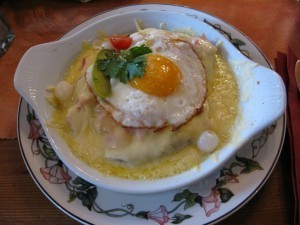 After a bit of riding, time for lunch. Here Zermatt shone as well, ofering mountain restaurants offering delectable (albeit not cheap) dining; no flavorless ski-hill cafeteria fare here. I stopped at Berghaus Grünsee and had a melted ham-and-cheesy-something-topped-with-fried-egg bit of yumminess that saw me handily through the rest of the afternoon.