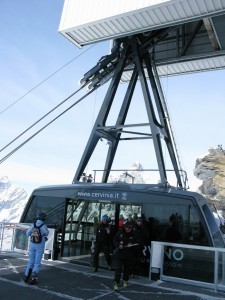 Next morning, all lingering travel weariness vanquished, I walked to the other side of town to experience this resort's signature experience: a ride all the way to the top of its highest skiable terrain (indeed, the highest in Europe), and a descent into –yes, really – neighboring Italy.