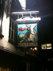 A train and Tube ride later and I was there – and, as I always am when discovering a new neighborhood in this town, suitably impressed: London's noisy vibrancy and wall-to-wall shops on commercial arteries feel just right for a city boy like me. Southwark is a melange of old and new, from a cathedral that bills itself as one of the first Gothic incarnations in Europe, to historic commercial structures fronting the Thames, to the still-under-construction Shard of Glass (set to become the tallest building in the EU), to The George, where we were to meet — a historic pub with roots in Chaucer, Shakespeare and Dickens. It was a cool but not overly frigid night, and people tippled along outdoor tables beneath gas-fired heat lamps that I associate with California more than moody Northern Europe.