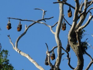 Equally captivating to me were some bulb-shaped creatures hanging from the tall trees: Sydney's got its resident population of bats, who sleep (yes) upside-down in the trees before taking wing at dusk over the city.