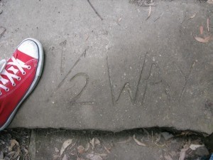 We figured a short hike would dodge the crowds, so we followed signs to "GREAT STAIRCASE" that looked to get ever closer to the Sisters. The steps were narrow, steep, and pretty crowded (though a trio of surprisingly loud and astonishingly fetching French guys in tank-tops made it worthwhile). Meanwhile, the hike was proving not so short: the steps continued down, and down, and down… no way we're hiking this back up, I mused. At least the crowds thinned out, and by the time we reached the flat trail about halfway down the valley through the woods, we had the place to ourselves