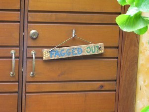The drive to Port Douglas seemed to suggest my blend of stays was right: Cook Highway was a glory, the blue Coral Sea on one side and rainforested hillsides on the other. As it headed toward dusk, the shuttle bus dropped me off at my accommodations for the next three days: the LGBT-owned Pink Flamingo Resort. A former 1970s-era motel converted into a colorful gay & lesbian villa-style inn, the place looked promising on the one hand: lush gardens, a pretty pool, colorfully painted and decorated. The former carports were redesigned into private villa forecourts, complete with most wonderful outdoor shower and soaker tub. They even invited guests to choose their own wooden placard indicating "do not disturb;" I immediately found one to my liking and hung it on my entryway (see picture).