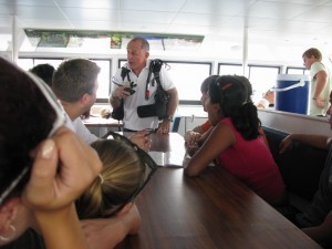The reef itself, meanwhile, really does need to be experienced up close and personal (photos coming soon!): although we'd been warned in an interpretive briefing (by the diving company's one truly fetching fellow, a blonde New Zealander) that the colors we'd be seeing aren't quite as bright as in all those movies and photos (where they're aided by flash photography and the wonders of CGI)… well, no complaints from me. On the dive down to sixteen meters (some forty-five feet) we spotted Christmas tree worms, brightly-colored fan-shaped protrusions from the coral that pop in when you come close to them; fat sea cucumbers lazing on the bottom (these can even be picked up without bother to them); giant sea clams, their colorful eye spots prompting the creature to, well, clam up at the first sign of danger; brilliantly-hued fish of all persuasions – yes, including clownfish hiding in anemones, made famous by the Pixar film Finding Nemo; a reef shark, hanging out on the bottom before his nighttime feed; and all manner and type of coral. These colonies of polypy creatures manufacture the eponymous material in vast colonies; the Barrier Reef, consisting of many reefs, in fact, is the largest single thing built by living organisms – and unlike those inflated claims about the Great Wall of China, the Reef can in fact be seen from outer space.