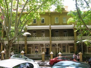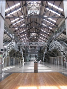 After a bit of lunch we went on a reconnoiter, filling in a few more gaps in my explorations of central Sydney. We walked down the Finger Wharf of Woolloomooloo, peeking into the former industrial building now converted to condos and a luxury hotel. Conveyor belts that used to carry ship cargo stood forever frozen amid high-tone bars and offices on the ground floor. As with so many once-derelict industrial spots in prime harborfront locales, this is yet another example of the ambivalence I feel about the continuing creep of gentrification.