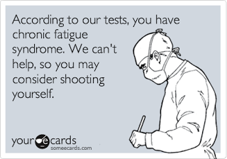 I know it probably sounds pathetic to a normal person, but I can't reiterate how real it is. I used to be a person always on the go, always getting things done. I had endless energy and could write, clean, cook, exercise, take care of the kids, do the grocery shopping, help with homework...how I'm lucky to get one of those things in during the day. So believe me, it's frustrating. I wanted a curable diagnosis so I could get back to being my normal self. But what my doctor said is this,