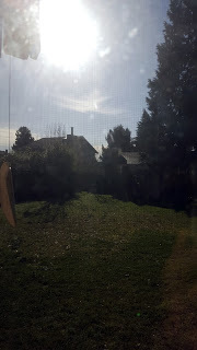 The view from my back door today.Today would have been a beautiful day to walk to work, but basically, CFS and insomnia (could be CFS related insomnia, but who knows) has kicked my ass this week. I pushed really hard last week and now I'm paying the price. Last night I tried a little "herbal" help for my sleep. Yes, I mean weed. Not just any weed, but weed designed specifically to help you sleep. Don't judge, it's legal here. It made me tired. I fell asleep. Then I woke at 2 am and stayed awake until almost 6 am. When I woke up again at 9ish, I feel like I got hit in the head with a baseball bat, I have enormous bags under my eyes and they sting, and my entire body aches, especially my back and elbow (the joint pain is excruciatingly painful).