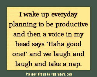 But now I just have to suck it up and get ready for work (a job in which I do truly love btw) and hope there are not too many phone calls or hard questions. And I just look forward to Friday, a day I don't have to do anything if I don't want to, or I can catch up on the stuff I need to if my body and brain allow it.