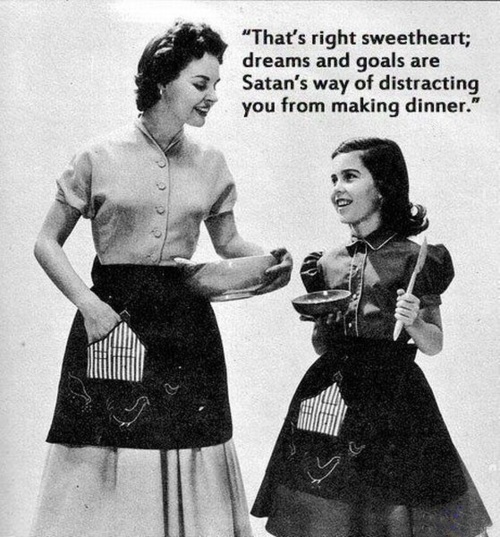 4. The cost of a degree is becoming more difficult to recoup. I don't necessarily disagree with this one, but it's the way he explains it that makes me want to bitch slap someone. Yes, college loans are expensive, good jobs are hard to find, but why must it be the man that has to bring a skill to the marketplace while the woman stay home and be frugal. Come on! What is this, the 1950's?