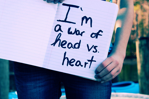 I've come to believe that you need a balance of heart and head to find a long lasting relationship. The heart is reckless and needs the head to help make good decisions. The head is obstinate, and needs the heart to help it overlook the things that are forgivable and worthy of fighting for.