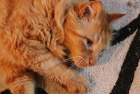 Yesterday she came in and was acting crazy. Next thing I know, she's in my office peeing in a box that held the newspaper articles about me and my book. I promptly tell Thing One to kick her out, as she's really the only one in the house that likes her.