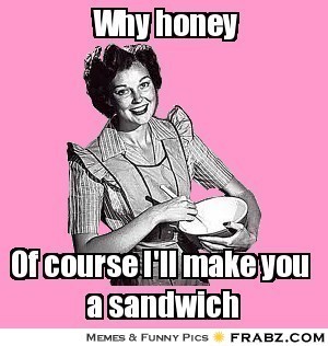 There are so many more. Let me see here. Not all feminists are butchy. Yes, women can be rapists, but the majority are men. I'm sure many feminists have husbands that love and respect them. And wow, go make a fucking sandwich then. And come one, the whole sandwich thing has gone too far and there are groups of men out there that are sick and post disgusting "humor" out there such as the meme below.