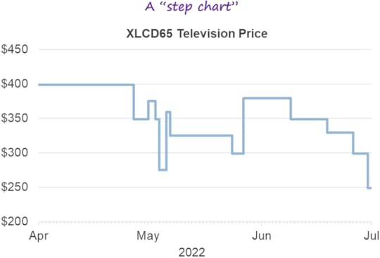 The values in this data occur at irregular intervals of time. For example, the price of the TV can change five times in one day and then stay the same for three weeks. Standard line charts, however, only work well when the values occur at regular intervals of time (one value per day, one value per month, etc.).