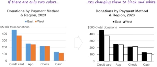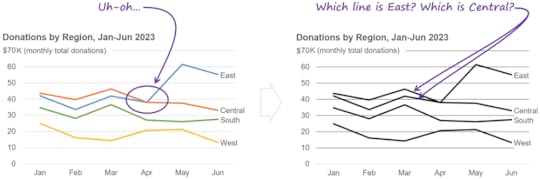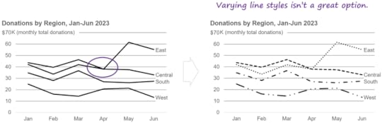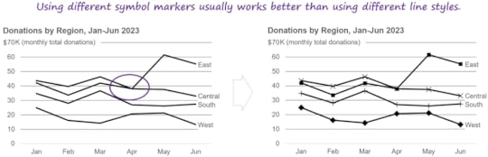 Some of the design changes below require features that your particular dataviz software may or may not support. If your software won’t cooperate for a given design change, you’ll need to try some of the other design changes.