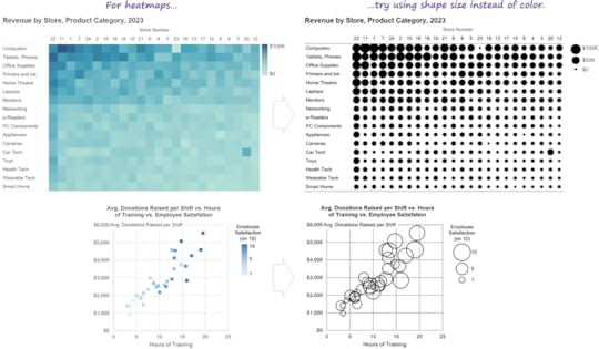 For “heatmap” charts that use darker and lighter shades of the same color to represent higher and lower values, you could…