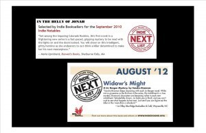 Widow’s Might, the third in the Liv Bergen Mystery Series, is on the shelves in book stores near you, thanks to the wonderful book sellers across this country who love Liv so much. I had no idea how incredibly lucky I really was in receiving an ABA Indie NextList Notable in September 2010, thanks to several booksellers who appreciated In The Belly Of Jonah, the debut of the Liv Bergen Mystery Series. A special thanks to Maria Uprichard from Boswell Books in Shelburne, MA for the nominating comments. I had heard the Indie NextList was a way for booksellers to pick the top 20 or so of the 12,000 – 15,000 newly published books each month back in 2010. What a thrill to be named as a runner up, a Notable, for September 2010!