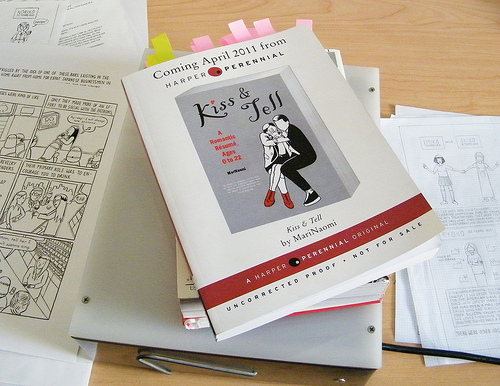 It's time for Kiss & Tell to get ready to be printed. Yeah, they printed up advance copies to send out to reviewers and all that, but that was a small run, and its quality was less than ideal (also, that was prior to the proofreading edits). Now, I've gone through this process before, when I got a fancy print job for Estrus #4, but to be honest I had no idea what I was doing, and I got lucky it ended up looking as nice as it did (I have my friend Lisa to thank, who did the graphic layout for me in exchange for a meal and my eternal gratitude). Anyway, so it's getting to be that time again, time to choose paper—thickness, color, etc. Luckily, my agent and editor both have a lot of experience in this field, and are helping me out. My first choice was a glossy paper, but my agent PJ pointed out that my book is already pretty heavy, and a glossy, heavy paper might impact its portability in a negative way. I hadn't even considered that!