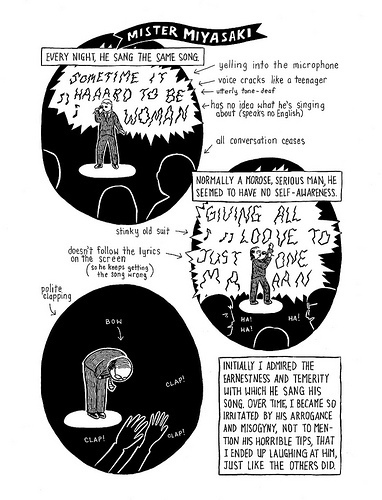 A sample page of a new book I'm working on, tentatively titled "Hapa." In this page, I describe a customer at the karaoke bar I worked at.
