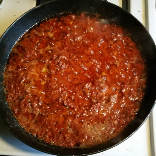 Meat sauce for the rigatoni tonight. (at K T Pinto-Land)