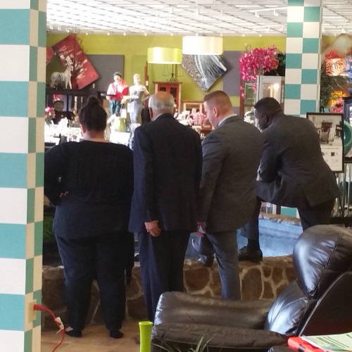 Everyone saying goodbye to the fish. (at Bob’s Discount Furniture)