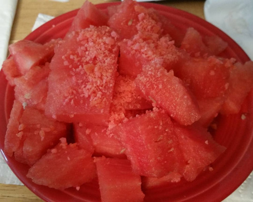 Breakfast of champions: watermelon and Pop Rocks! (at K T Pinto-Land)