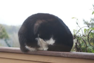This week's installment is our cat, Trouble, grabbing a snooze on the deck railing - or practicing kitty yoga, I'm not sure which. In case you were wondering, his head is to the right and he was in this position for over an hour. He earned his name as a kitten when he used to throw himself on the driveway in front of the car when we came home.