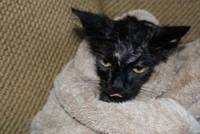 After multiple trips to the vet as a pupster, we finally figured out Trim is allergic to corn. If she eats ANY food with corn it (a single piece of cat food kibble, a stray kernel of popcorn that has bounced under the stove, even a cookie crumb with corn syrup in it) she gets itchy ears. Actually, just one itchy ear. Always the left. Sometimes, if we're not paying attention and she goes to town scratching it, she gives herself an embolism and has to go to that awful place called . . . The Veterinarian's, get her ear drained and stitched, and then get 2-weeks worth of antibiotics.