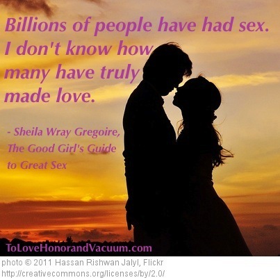 The 31 Days to Great Sex is designed to be cumulative: you start with some basic relationship stuff, and then you build from there. It’s not “31 Days of Sex Tricks” at all–though there are posts later in the month on how to make it feel wonderful. And that’s because sex is so much more than just a physical experience. It’s supposed to be intimate physically, yes, but also emotionally and spiritually.