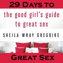We're in the final few days of our 29 Days to Great Sex, which means we're just a few days away from our awesome contest where you could win a first–or second–honeymoon! And my book, The Good Girl's Guide to Great Sex, is available right now for the Nook, and tomorrow through Amazon for the Kindle. The print version ships on March 6, and it's 30% off until then!