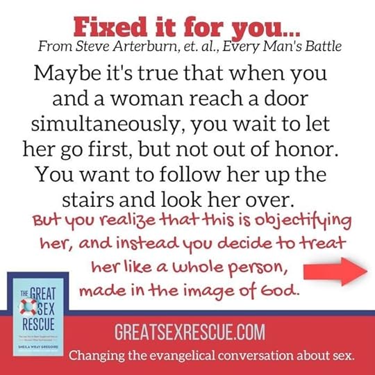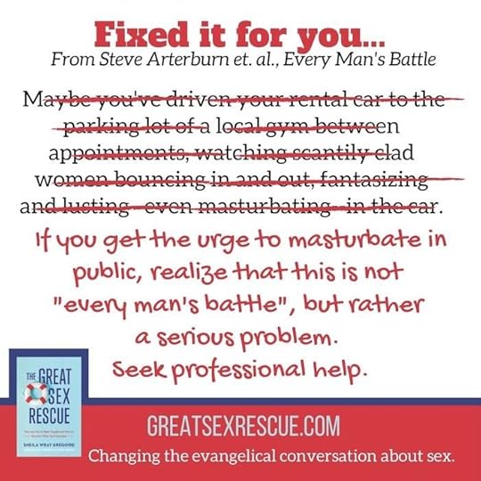 By the way, I’m continually dismayed at how badly Christian books handle porn. A number of people have sent me screenshots of books they’ve been reading which are just as bad as Every Man’s Battle. I really hope such books won’t be able to be written after The Great Sex Rescue! I hope we’ve made a difference.