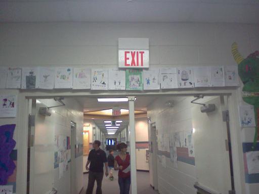 When we finally arrived, Principal Kristy Spann and over three hundred students gave us a hero’s welcome. What a rowdy bunch (especially Mrs. Spann! :p). Instead of a three mile drive, we felt as if we had traveled three hundred miles on foot through dragon-infested wastelands to reach the school. We thought the school might pin medals to our chests. They seemed that appreciative.