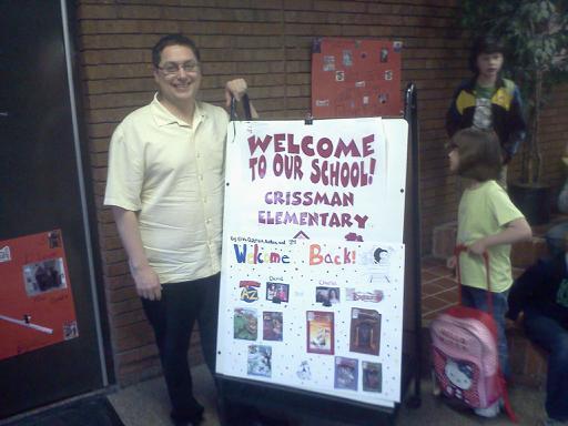 Friday March 16, 2012 wasn't quite St. Patrick's Day, but if felt like a holiday to Charlie and me. First of all, we visited Crissman Elementary in Shelby Township, Michigan and were greeted by a sea of green-garbed students. Not exactly leprechauns at the end of a rainbow but golden nonetheless. Secondly, the fifth graders had literally covered the school with welcome posters. Check them out below. I *hope* I managed to photograph them all. Seeing them made us feel as treasured as any pot...