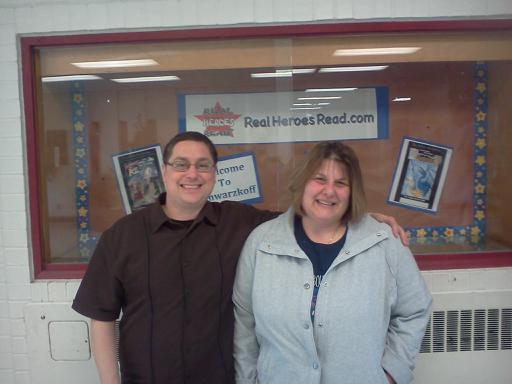Today, March 21, 2012, was one of those days where Charlie and I didn't dare blink. Zoom! We visited Beacon Tree Elementary in the morning (we'll be back tomorrow and post a write-up later). Zoom! We cruised over to Morgan Elementary in Shelby Township, Michigan. Zoom! We scarfed a quick Jimmy John's lunch with Media Specialist and High Energy Guy Mike DeLorenzo. Zoom! We presented our Real Heroes Read! Book Talk to the K-2nd graders. Zoom! We signed 200 books in 40 mins. Zoom! We gave...