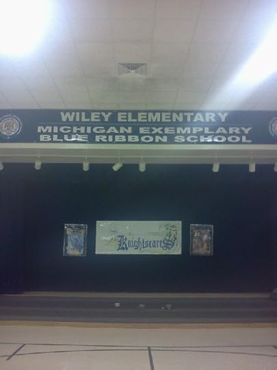 February 29th doesn't come around often, so Charlie and I made it memorable. After an icy start (the roads and weather), we arrived at Wiley Elementary in Sterling Heights, Michigan "only" an hour late. Fortunately the staff at Wiley was very accommodating and understanding. Thank you! They adjusted their schedules and made our visit work. They even left up fancy signs to welcome us.