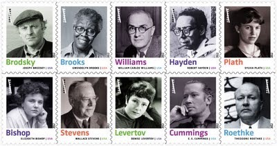And yes of course, Sylvia's included, much to my delight. And Cummings, Brooks, Bishop, and Levertov! Of course, the USPS adores writers- we spend millions of dollars a year on postage of manuscripts, blog giveaways, editor gifts, bookmark peddling, agent love letters and etc. I'm there at least four times a month and each time EVERY TIME I spend 40 bucks a pop on fancy stamps I don't really need... because I have a serious stamp problem and when I say problem I'm not kidding.