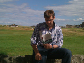 Here is a smashing photo of my handsome brother in law reading And Then Things Fall Apart on the glistening greens of St. Andrews. Thanks to him and my other family there, my sales numbers show a spike in Scotland.