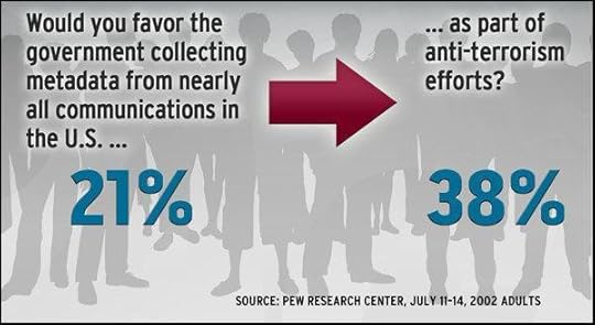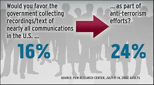 Last night Rachel highlighted a Pew study that showed Americans are more willing to sacrifice their privacy to domestic surveillance if it's in the name of preventing terror attacks. The graphics were so clear I wanted to reshare them here.