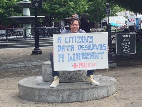 Saturday, 8:30 am, New York City. This guy sat down in Father Demo Square in the West Village to quietly protest the still ongoing spying activities over at the National Security Agency. So if you're out there feeling frustrated, creeped out, or just plain offended that the very existence of these spying programs are themselves secret, here's a reminder that there is at least one more person feeling the same thing.