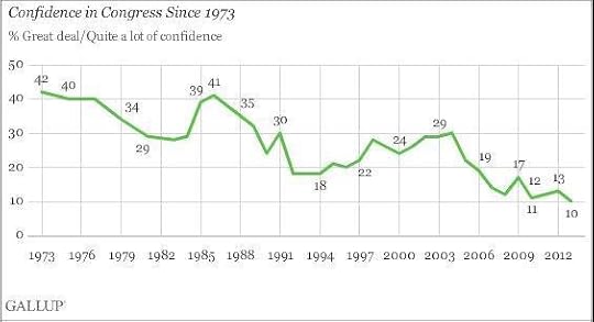 Gallup reported yesterday, "Americans' confidence in Congress as an institution is down to 10%, ranking the legislative body last on a list of 16 societal institutions for the fourth straight year. This is the lowest level of confidence Gallup has found, not only for Congress, but for any institution on record."