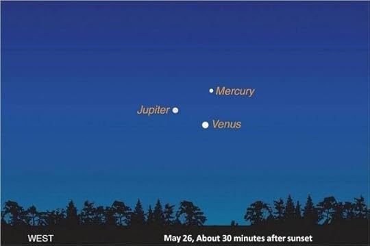 If you have clear skies and a view of the western horizon, you are in for a celestial treat this week. Starting tonight, Jupiter, Venus, and Mercury will be having a "star party" in the west just after sunset. Jupiter is actually setting while Mercury is rising (due to how our point of view is changing as we all go around the Sun), but all three will appear together in the sky over the next week or so. Planetary conjunctions of three planets are not all that rare, happening approximately every few years with a varying roster of planets, but they are still a treat to see. Space.com has a nice viewing guide, including a video of what configuration you can expect to see each night. And Stardate.org has a free podcast on what they call the upcoming "evening [planet] traffic jam." Here's hoping you get to see the fun. Me? I'll be searching for a place where Jersey doesn't block my view...