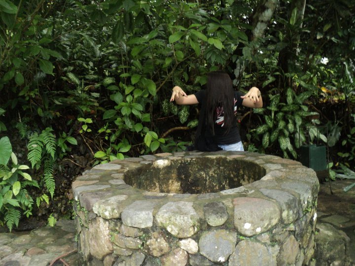 Habang naglalakbay kami ni Sonia Francesca papunta sa Hidden Falls, nakakita kami ng balon. Dahil wala akong tulog, napagtripan ko i-impersonate si Sadako. But Sadako with bangs and red nail polish na nakasuot ng astig na rockstar duds--graffiti shirt & torn jeans. Hehe..