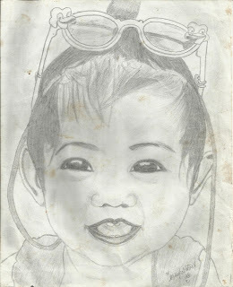 The first image I drew after I learned the method of sketching was my face. And it was a success. (Thank God I have less-complicated face.) Yet unfortunately, my walang-magawa nephew, ruined it. Sayang. Next, I drew my niece Nicole. When I sketched my mom's face, my uncle (who could draw also) tried to "fix" it to his standards but ended up messing it up. I also drew my friend's face and gave it to her on her birthday. So, the only piece I have in my care is my niece's. But since it's old, it has stains already. I was too lazy to do my 5th sketch so it took me about 8-9 years before I started drawing again.