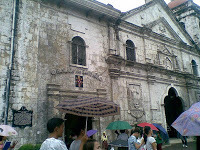 We checked in at a Japanese hotel. Booksigning namin is 21-24. So when we arrived on 20, we had a few time to spend on gala along Cebu City. I, Sofia and Sonia first went to SM Cebu City where we were able to meet a few readers and one of them became our instant tour guide sa konting gala namin along the city. Kumain kami ng famous lechon Cebu which is really salty and oily pero masarap! Then we went to Sto. Nino Church. Pero bago kami nakarating doon, naligaw muna kami ng mabongga! Naligaw kami sa avenida, quiapo at divisoria! hahahaha! There's some places there that really resembled Avenida, Quiapo and Divisoria. I and Sonia had fun ranting and joking about the place. Then we saw two Caucasians walking, I told her "Kapag may foreigner, ibig sabihin tourist spot yun!" Kaya yun! Tourist spot na din ang Avenida, Qiuapo, Divisoria ng Cebu! Kaya nag-sightseeing din ako. So beautiful! hehehe.. And then after the long stroll along the putikan, we'd reached the famous church in Cebu...