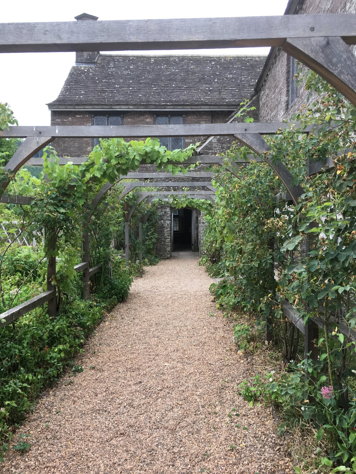 I spent a long time here on a warm Sunday morning in July, wandering through the rose arbour, lingering in the orchard before returning to the house. As I progressed along the dim corridors I could almost hear the skirts of my gown trailing after me on the stone floors. I paused, and time was suspended as I looked through thick, green glass to the courtyard and garden below.