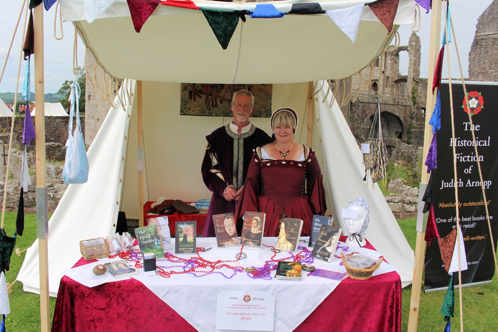 Above is a photograph taken by a visitor to last year's event. It shows me and my trusty servant primed and ready to begin the day. My biggest fear this year is not fitting into my Tudor gown, the combined effects of middle-age spread and too much ice cream to combat the heat this summer has made it ... erm ... a little tight but I am pretty confident my French Hood will fit